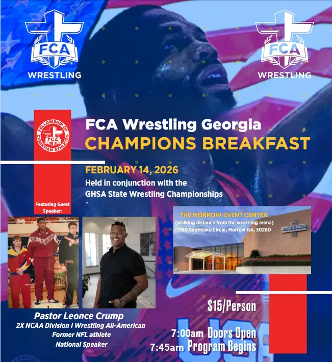 Join us at the FCA Wrestling Champions Breakfast on Saturday, February 14 at the GHSA State Championships as we celebrate excellence on and off the mat and honor this year’s FCA Wrestlers of the Year.